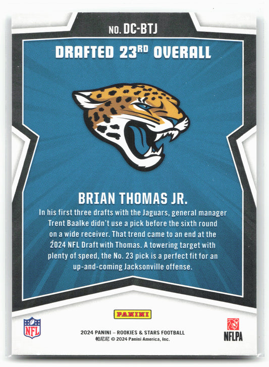 This is a nice example of a 2024 Panini Rookies & Stars #DC-BTJ Brian Thomas Jr. Draft Class Other important information about this card:In 2024 Brian Thomas Jr. played for...