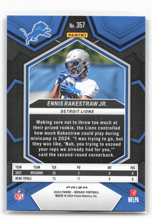 This is a nice example of a 2024 Panini Mosaic #357 Ennis Rakestraw Jr. Mosaic Camo Pink Other important information about this card:In 2024 Ennis Rakestraw Jr. played for the...