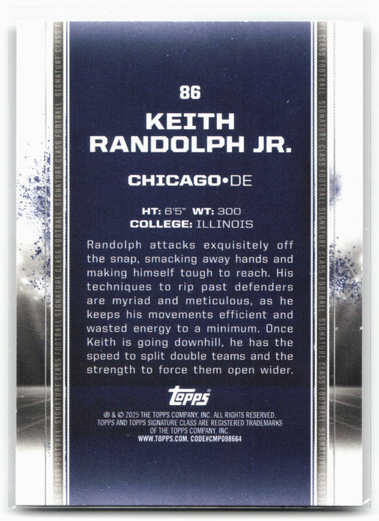 This is a nice example of a 2024 Topps Signature Class #86 Keith Randolph Jr. Bronze Other important information about this card:RCIn 2024 Keith Randolph Jr. played for the Chicago...