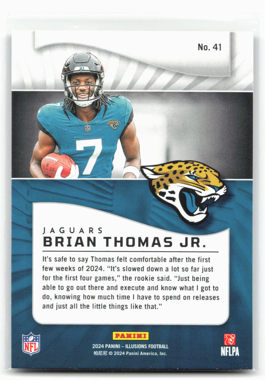 This is a nice example of a 2024 Panini Illusions #41 Brian Thomas Jr. Retail Other important information about this card:RCIn 2024 Brian Thomas Jr. played for the Jacksonville Jaguars.Please...