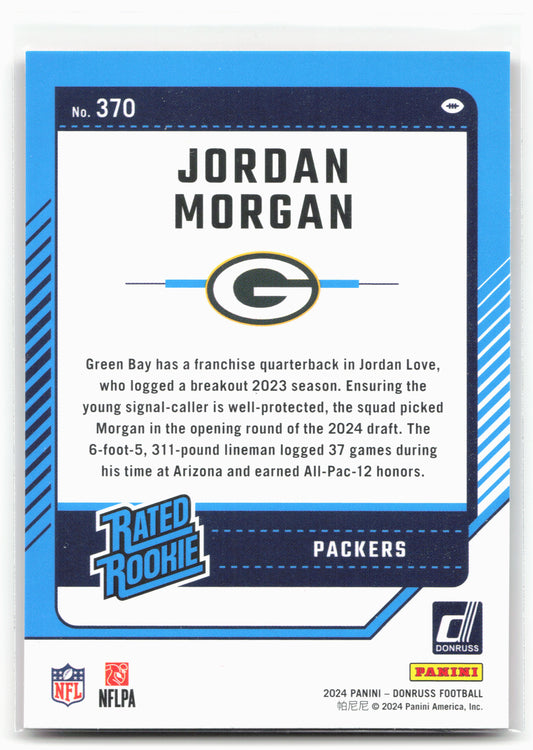 This is a nice example of a 2024 Donruss #370 Jordan Morgan Press Proof Red Other important information about this card:RCIn 2024 Jordan Morgan played for the Green Bay Packers.Please...