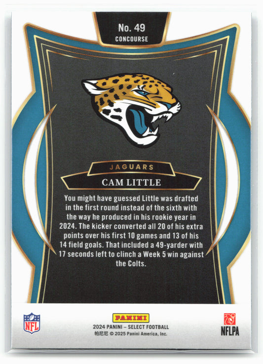 This is a nice example of a 2024 Panini Select #49 Cam Little Other important information about this card:RCIn 2024 Cam Little played for the Jacksonville Jaguars.Please check out our...