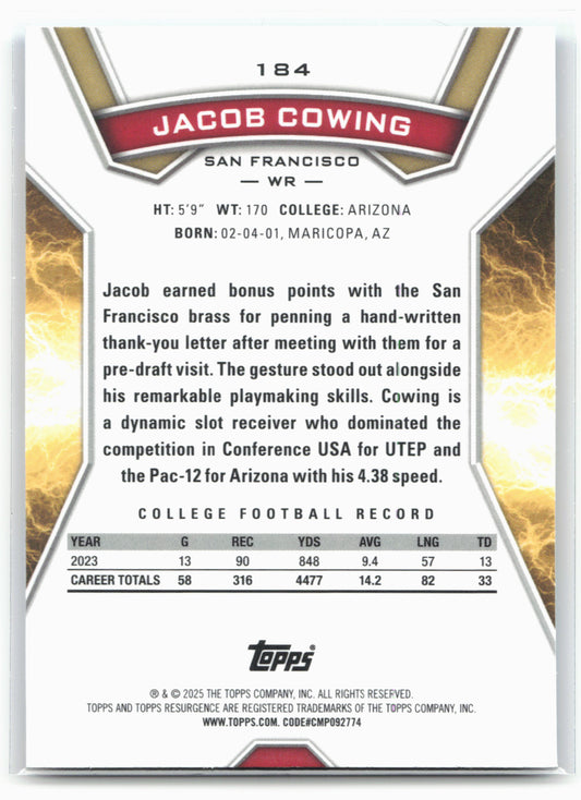 This is a nice example of a 2024 Topps Resurgence #184 Jacob Cowing Blue and Orange Spark Other important information about this card:RCIn 2024 Jacob Cowing played for the San...