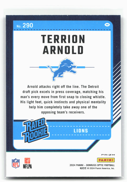 This is a nice example of a 2024 Donruss Optic #290 Terrion Arnold Purple Shock Other important information about this card:In 2024 Terrion Arnold played for the Detroit Lions.Please check...