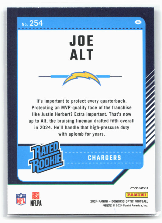 This is a nice example of a 2024 Donruss Optic #254 Joe Alt Blue Hyper Other important information about this card:In 2024 Joe Alt played for the Los Angeles Chargers.Please...