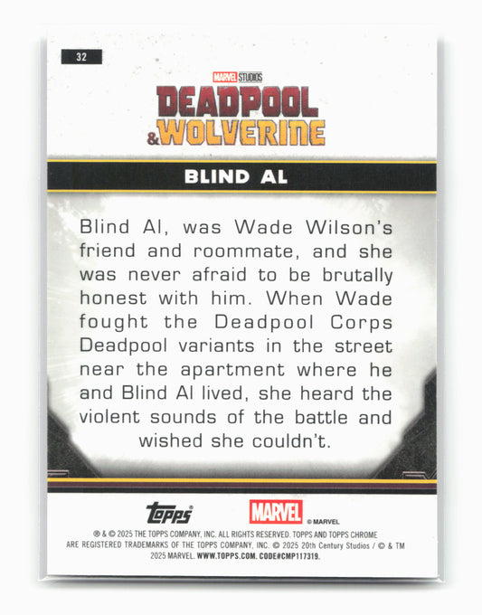 This is a nice example of a 2025 Topps Chrome Marvel Deadpool #32 Blind Al Other important information about this card:In 2025 Blind Al played for the .Please check out...