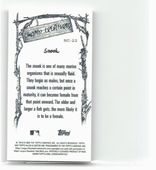 This is a nice example of a 2024 Topps Allen & Ginter #SC-22 Snook Mini Swamp Creatures Other important information about this card:In 2024 Snook played for the MLB.Please check...