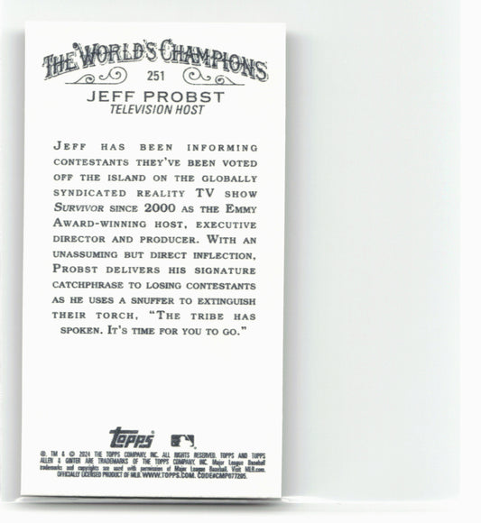 This is a nice example of a 2024 Topps Allen & Ginter #251 Jeff Probst Mini Gold Border Other important information about this card:In 2024 Jeff Probst played for the...