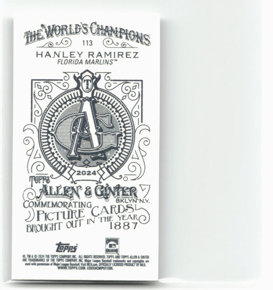 This is a nice example of a 2024 Topps Allen & Ginter #113 Hanley Ramirez Mini A & G Back Other important information about this card:In 2024 Hanley Ramirez played...
