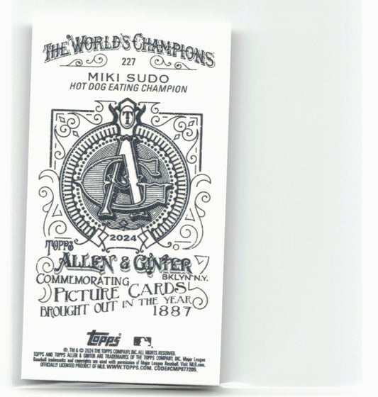 This is a nice example of a 2024 Topps Allen & Ginter #227 Miki Sudo Mini A & G Back Other important information about this card:In 2024 Miki Sudo played...