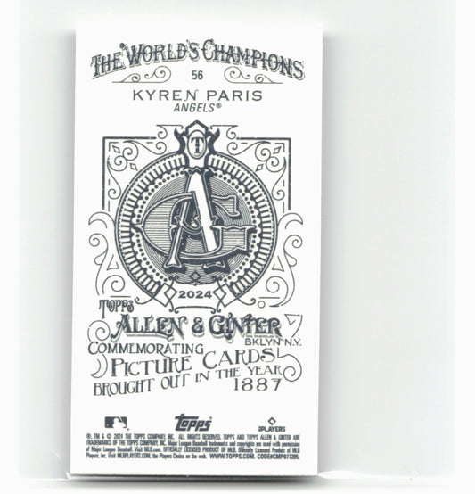 This is a nice example of a 2024 Topps Allen & Ginter #56 Kyren Paris Mini A & G Back Other important information about this card:RCIn 2024 Kyren Paris played...