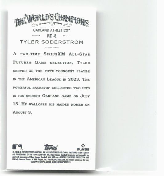This is a nice example of a 2024 Topps Allen & Ginter #RD-8 Tyler Soderstrom Mini Rookie Design Variations Other important information about this card:In 2024 Tyler Soderstrom played for...