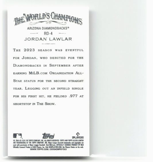 This is a nice example of a 2024 Topps Allen & Ginter #RD-4 Jordan Lawlar Mini Rookie Design Variations Other important information about this card:In 2024 Jordan Lawlar played for...