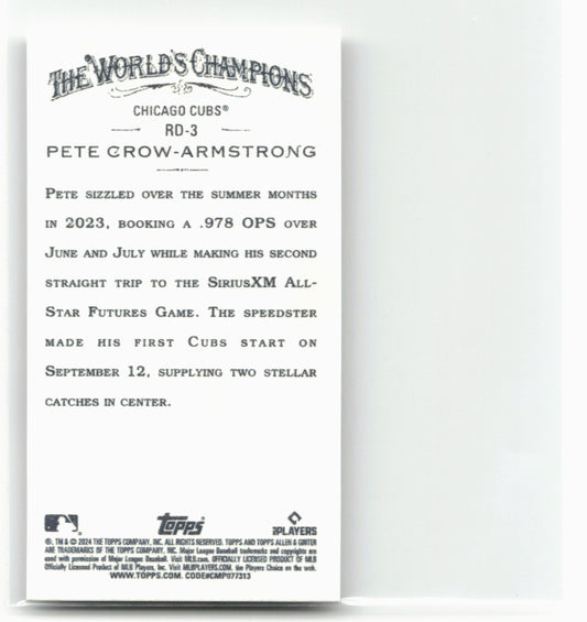 This is a nice example of a 2024 Topps Allen & Ginter #RD-3 Pete Crow-Armstrong Mini Rookie Design Variations Other important information about this card:In 2024 Pete Crow-Armstrong played for...