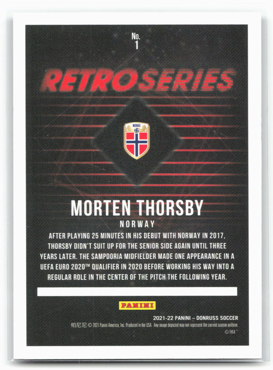 This is a nice example of a 2021-22 Donruss #1 Morten Thorsby Retro Series Press Proof Other important information about this card:In 2021 Morten Thorsby played for the Norway.Please check...