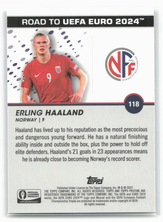 This is a nice example of a 2023 Topps Pristine Road To Euro 2024 #118 Erling Haaland Other important information about this card:In 2023 Erling Haaland played for the Norway.Please...
