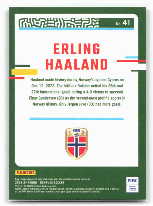 This is a nice example of a 2023-24 Donruss #41 Erling Haaland Silver Other important information about this card:In 2023 Erling Haaland played for the Norway.Please check out our other...