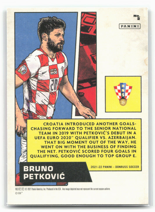 This is a nice example of a 2021-22 Donruss #2 Bruno Petkovic Net Marvels Press Proof Other important information about this card:In 2021 Bruno Petkovic played for the Croatia.Please check...