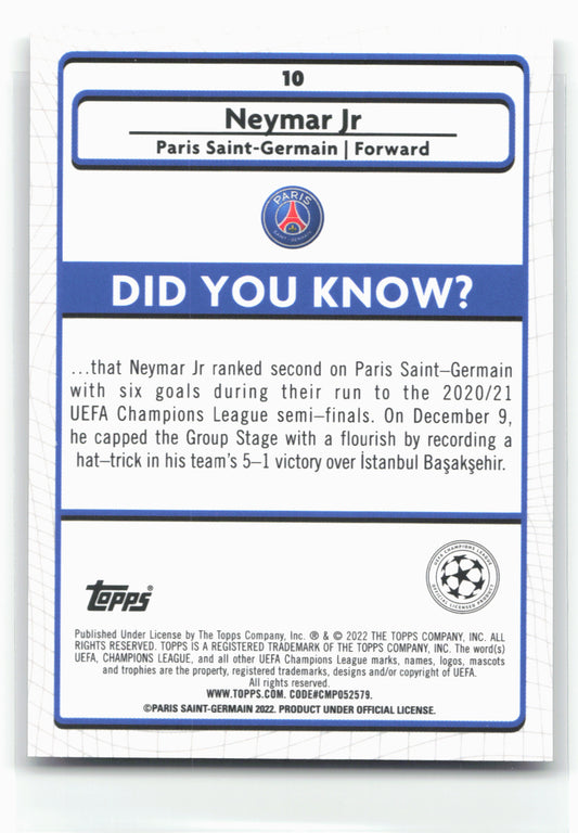This is a nice example of a 2021-22 Merlin UEFA Champions League #10 Neymar Jr Other important information about this card:In 2021 Neymar Jr played for the Paris Saint-Germain.Please check...
