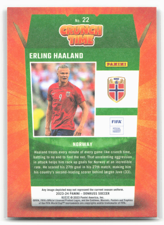 This is a nice example of a 2023-24 Donruss #22 Erling Haaland Crunch Time Other important information about this card:27439In 2023 Erling Haaland played for the Norway.Please check out our...