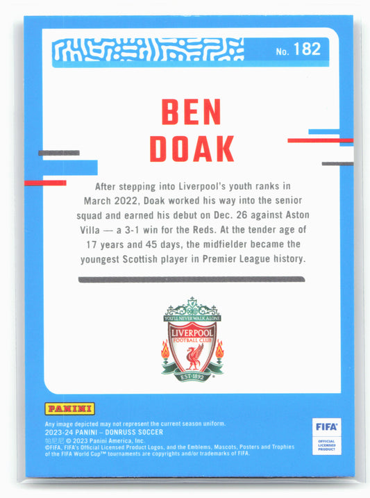 This is a nice example of a 2023-24 Donruss #182 Ben Doak Optic Other important information about this card:In 2023 Ben Doak played for the Liverpool.Please check out our other...