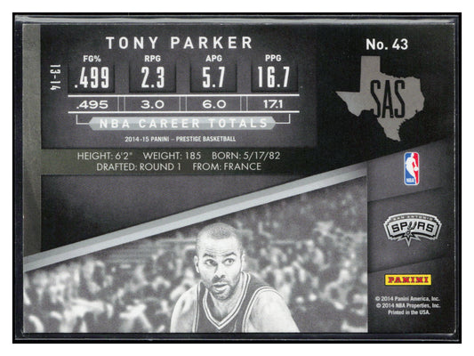 This is a nice example of a 2014-15 Panini Prestige #43 Tony Parker Other important information about this card:In 2014 Tony Parker played for the San Antonio Spurs.Please check out...