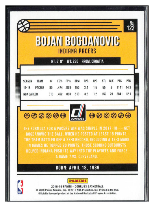 This is a nice example of a 2018-19 Donruss #122 Bojan Bogdanovic Other important information about this card:In 2018 Bojan Bogdanovic played for the Indiana Pacers.Please check out our other...