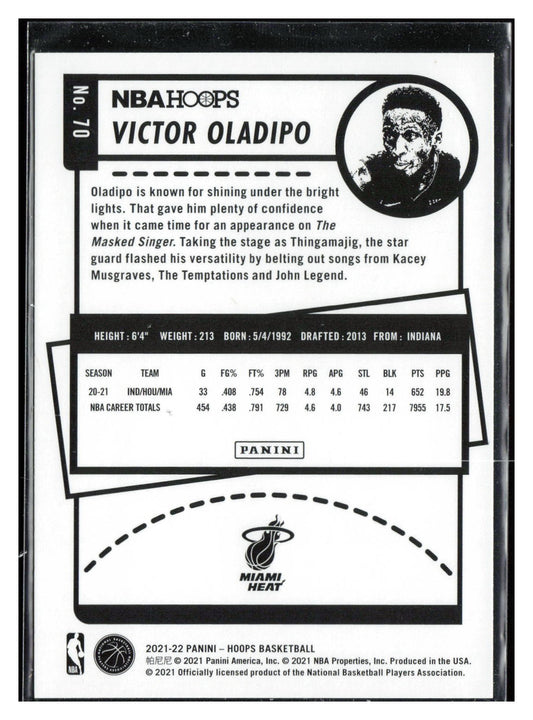 This is a nice example of a 2021-22 Hoops #70 Victor Oladipo Other important information about this card:In 2021 Victor Oladipo played for the Miami Heat.Please check out our other...