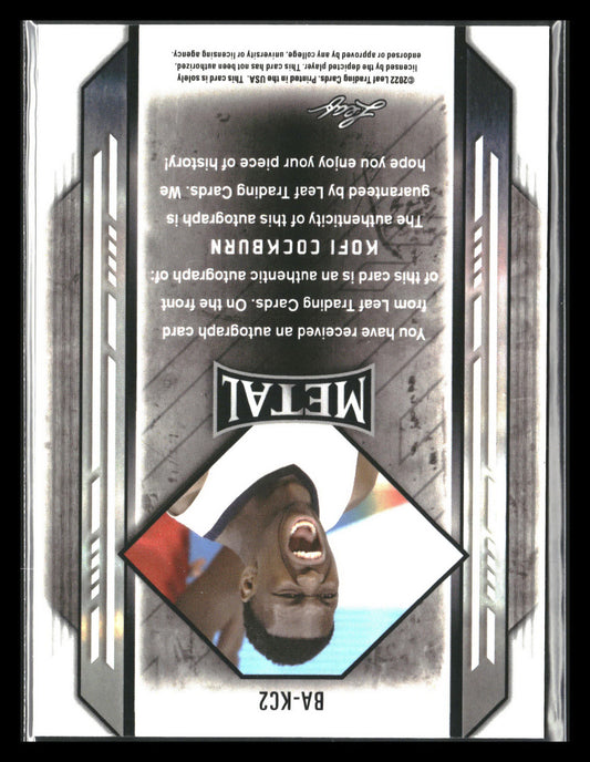 This is a nice example of a 2021-22 Leaf Metal #BA-KC2 Kofi Cockburn Silver Mojo Other important information about this card:AUIn 2021 Kofi Cockburn played for the Illinois.Please check out...