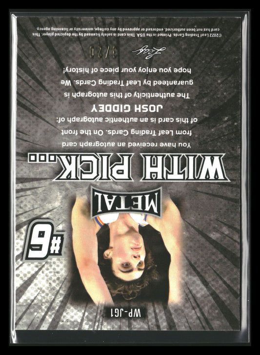This is a nice example of a 2021-22 Leaf Metal #WP-JG1 Josh Giddey With Pick... Autographs Pink Wave Other important information about this card:AU,SNIn 2021 Josh Giddey played for the...