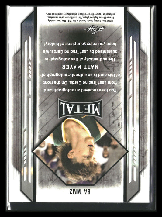 This is a nice example of a 2021-22 Leaf Metal #BA-MM2 Matt Mayer Other important information about this card:AUIn 2021 Matt Mayer played for the Baylor Bears.Please check out our...