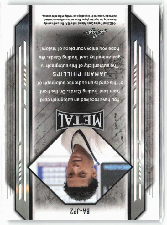This is a nice example of a 2021-22 Leaf Metal #BA-JP2 Jamari Phillips Other important information about this card:AUIn 2021 Jamari Phillips played for the Toronto Blue Jays.Please check out...