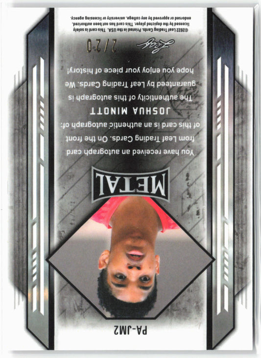 This is a nice example of a 2021-22 Leaf Metal #BA-JM2 Joshua Minott Pink Wave Other important information about this card:AU,SNIn 2021 Joshua Minott played for the West Ham United.Please...