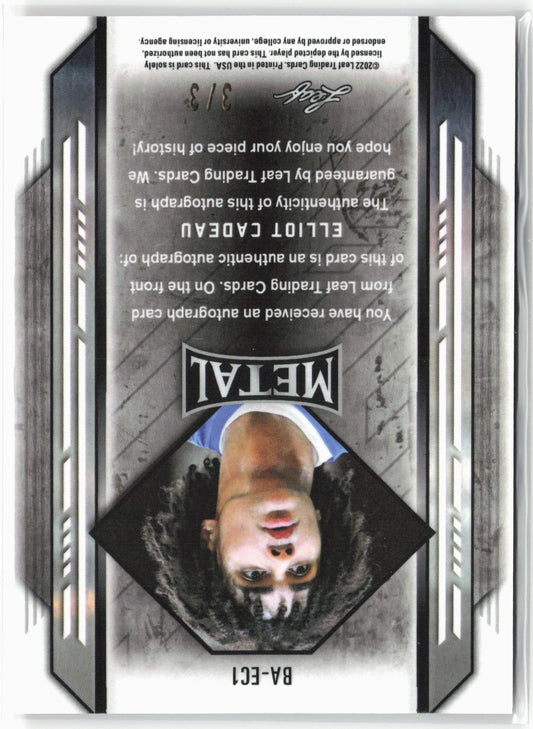 This is a nice example of a 2021-22 Leaf Metal #BA-EC1 Elliot Cadeau Orange Mojo Other important information about this card:AU,SNIn 2021 Elliot Cadeau played for the College.Please check out...