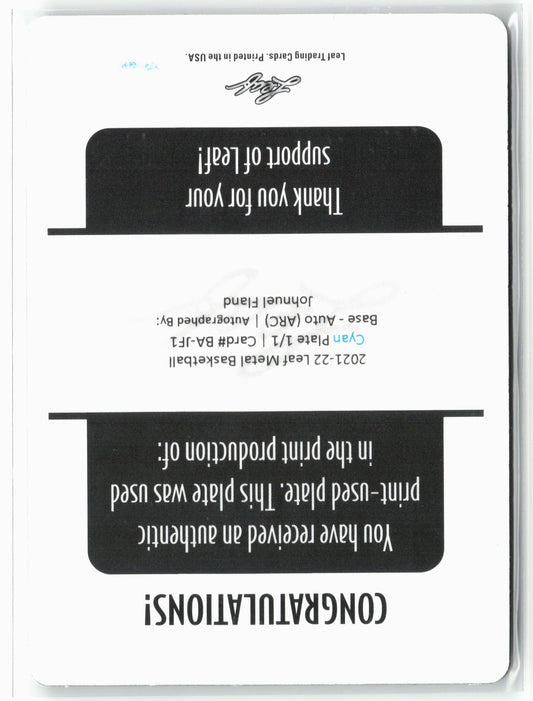 This is a nice example of a Leaf Metal # Johnuel Fland Printer Plate Other important information about this card:In 2021 Johnuel Fland played for the College.Please check out our...