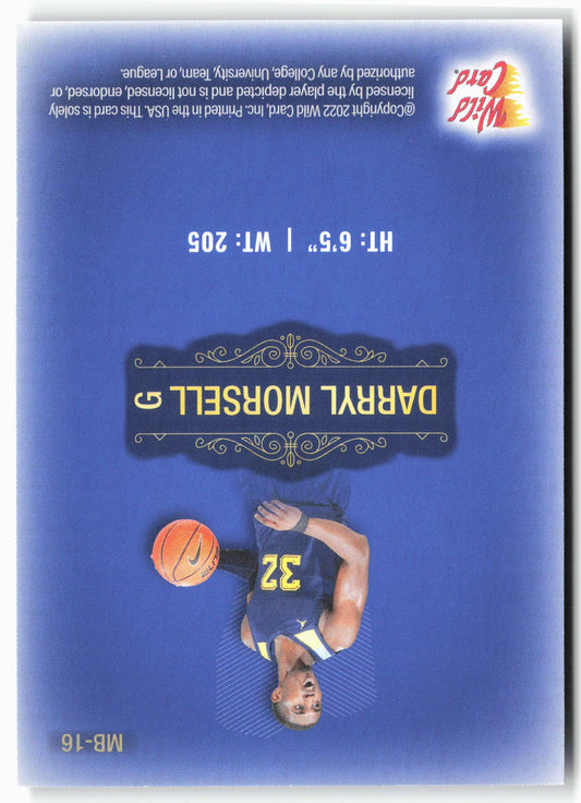 This is a nice example of a 2022 Wild Card Matte #MB-16 Darryl Morsell Blue Chase Other important information about this card:In 2022 Darryl Morsell played for the Marquette Golden...