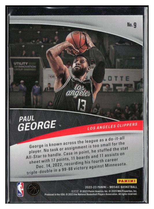 This is a nice example of a 2022-23 Panini Mosaic #9 Paul George Elevate Other important information about this card:In 2022 Paul George played for the Los Angeles Clippers.Please check...