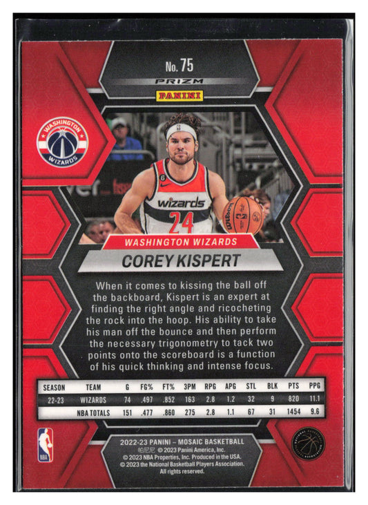 This is a nice example of a 2022-23 Panini Mosaic #75 Corey Kispert Reactive Blue Other important information about this card:In 2022 Corey Kispert played for the Washington Wizards.Please check...
