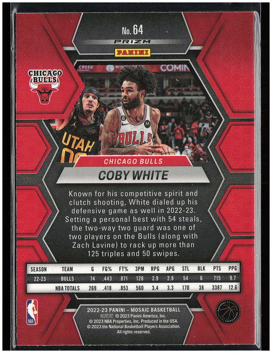 This is a nice example of a 2022-23 Panini Mosaic #64 Coby White Reactive Blue Other important information about this card:In 2022 Coby White played for the Chicago Bulls.Please check...