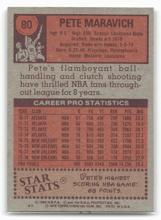 This is a nice example of a 1978-79 Topps #80 Pete Maravich Other important information about this card:In 1978 Pete Maravich played for the New Orleans Jazz.Please check out our...