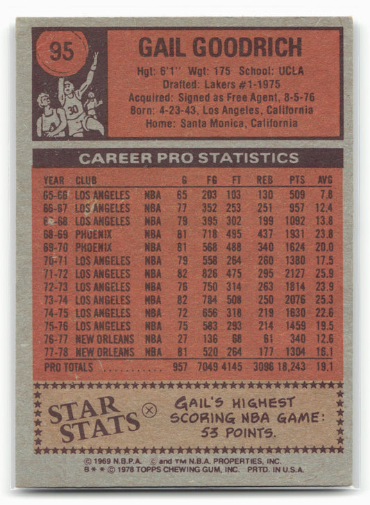 This is a nice example of a 1978-79 Topps #95 Gail Goodrich Other important information about this card:In 1978 Gail Goodrich played for the New Orleans Jazz.Please check out our...