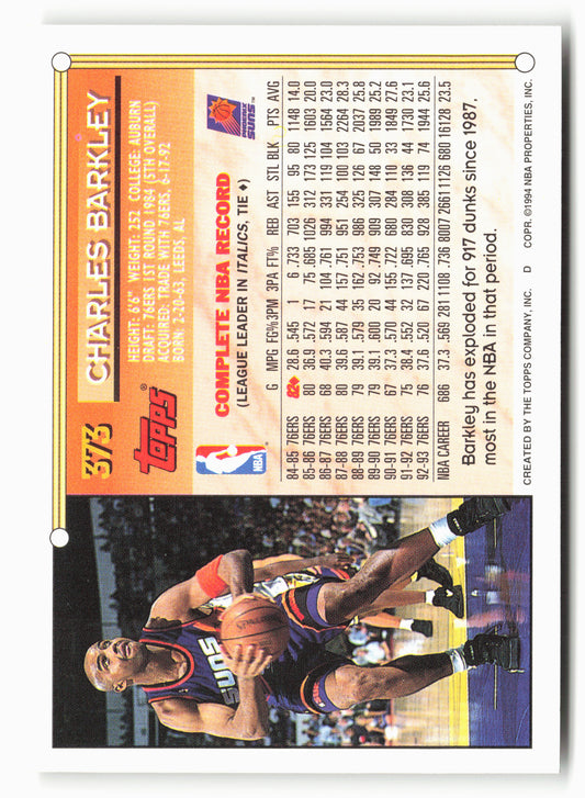 This is a nice example of a 1993-94 Topps #373 Charles Barkley Other important information about this card:In 1993 Charles Barkley played for the Phoenix Suns.Please check out our other...