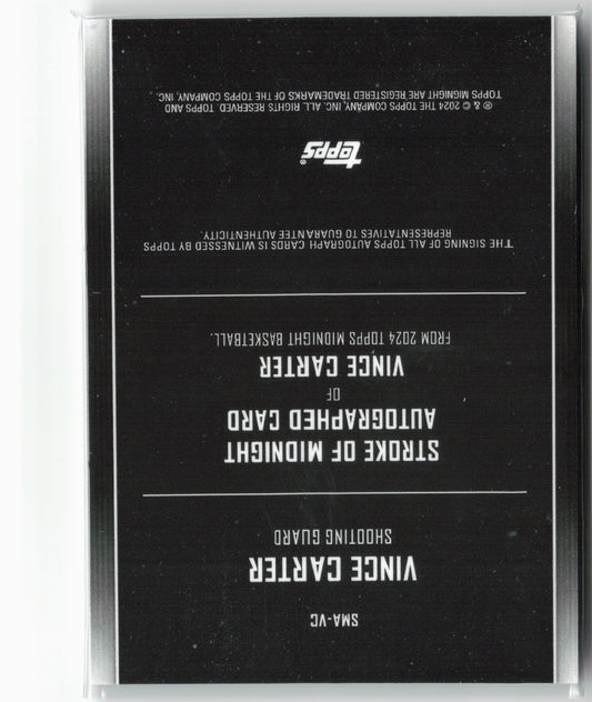 This is a nice example of a 2023-24 Topps Midnight #SMA-VC Vince Carter Stroke of Midnight Autographs Daybreak Other important information about this card:SN,AUIn 2023 Vince Carter played for the...