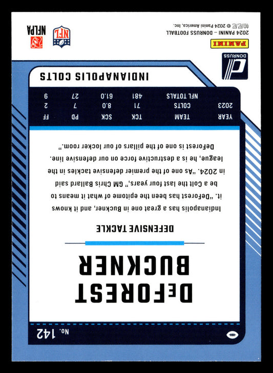 This is a nice example of a 2024 Donruss #142 DeForest Buckner Other important information about this card:In 2024 DeForest Buckner played for the Indianapolis Colts.Please check out our other...