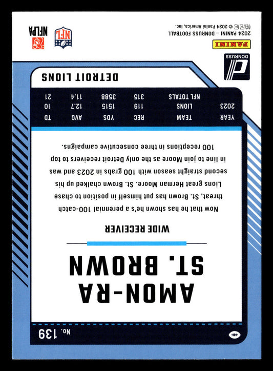This is a nice example of a 2024 Donruss #139 Amon-Ra St. Brown Other important information about this card:In 2024 Amon-Ra St. Brown played for the Detroit Lions.Please check out...