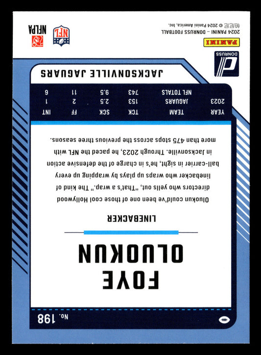 This is a nice example of a 2024 Donruss #198 Foye Oluokun Other important information about this card:In 2024 Foye Oluokun played for the Jacksonville Jaguars.Please check out our other...