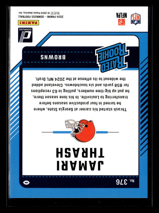 This is a nice example of a 2024 Donruss #376 Jamari Thrash Press Proof Red Other important information about this card:RCIn 2024 Jamari Thrash played for the Cleveland Browns.Please check...