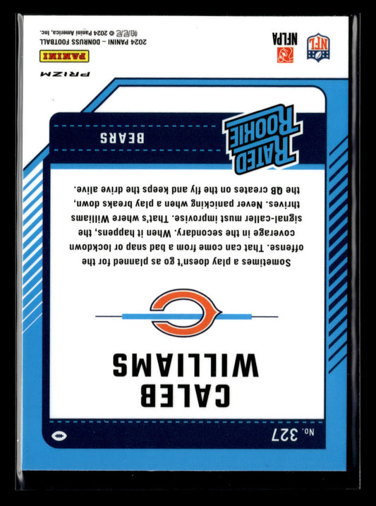 This is a nice example of a 2024 Donruss #327 Caleb Williams HOLO Other important information about this card:RCIn 2024 Caleb Williams played for the Chicago Bears.Please check out our...