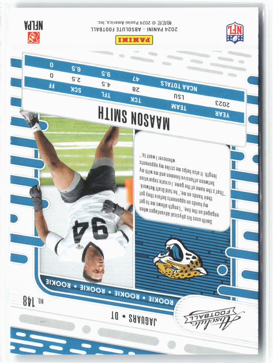 This is a nice example of a 2024 Panini Absolute #148 Maason Smith Other important information about this card:RCIn 2024 Maason Smith played for the Jacksonville Jaguars.Please check out our...