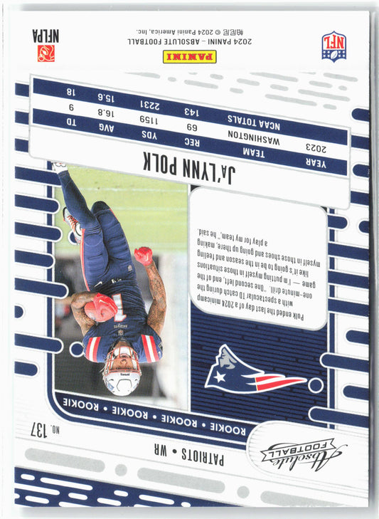 This is a nice example of a 2024 Panini Absolute #137 Ja'Lynn Polk Other important information about this card:RCIn 2024 Ja'Lynn Polk played for the New England Patriots.Please check out...